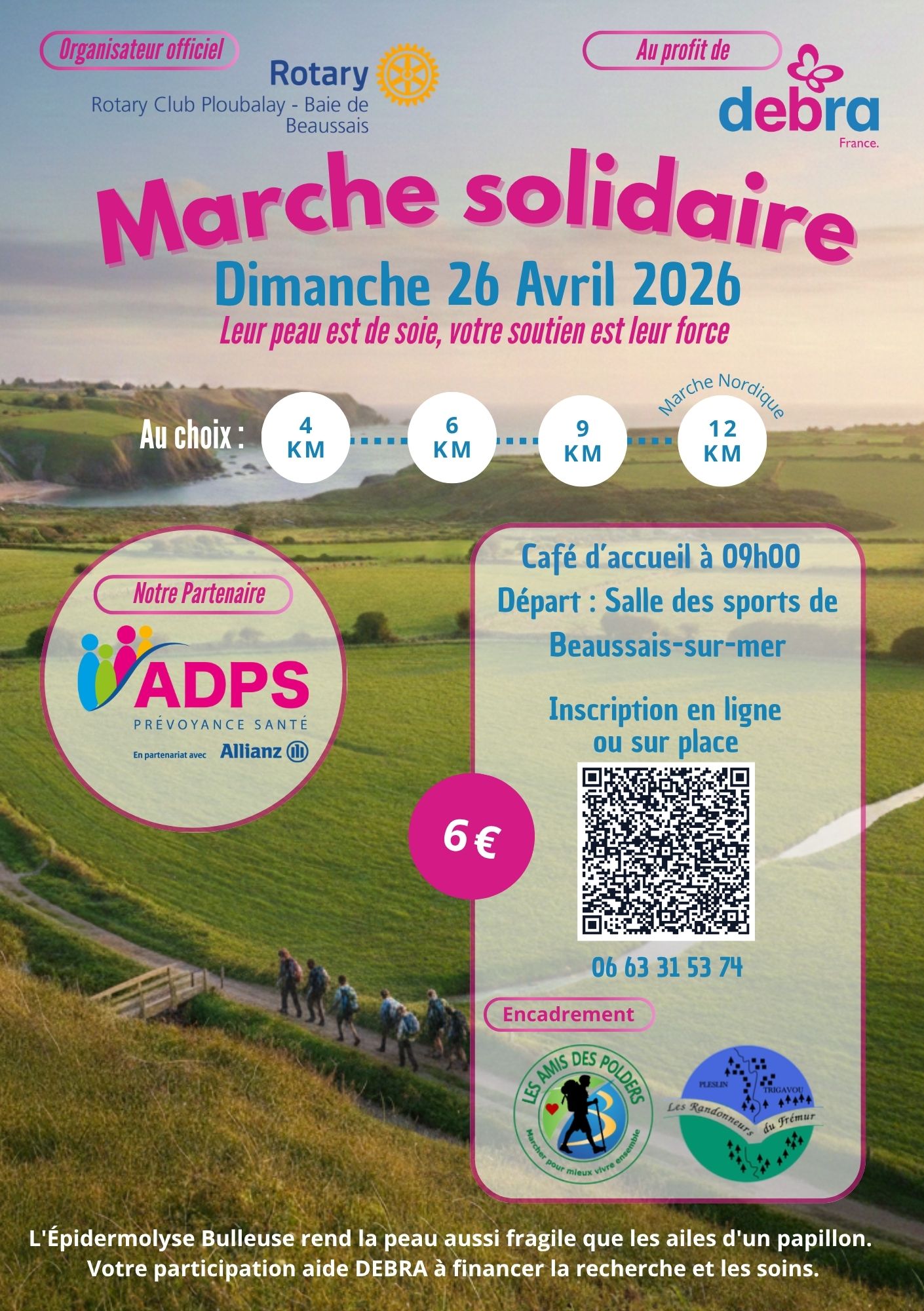 Dimanche 26 avril 2026, participez à la marche solidaire organisée à Beaussais-sur-mer au profit de l’association DEBRA qui vient en aide aux personnes atteintes d’épidermolyse bulleuse, une maladie génétique de la peau.
